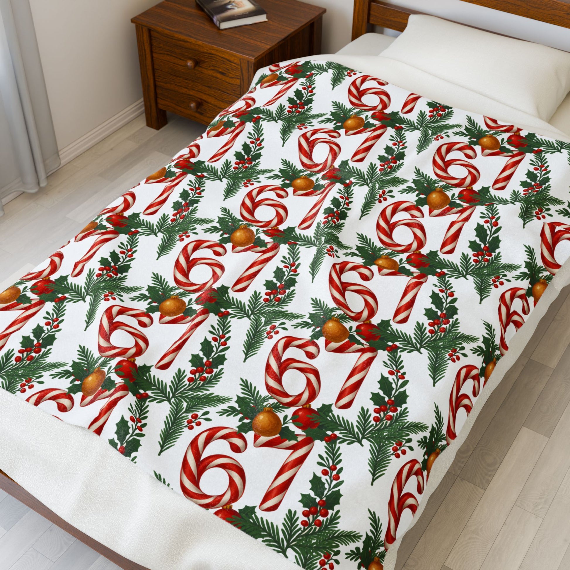 67 Christmas Candy Cane Velveteen Plush Blanket – Holiday Cozy Throw
