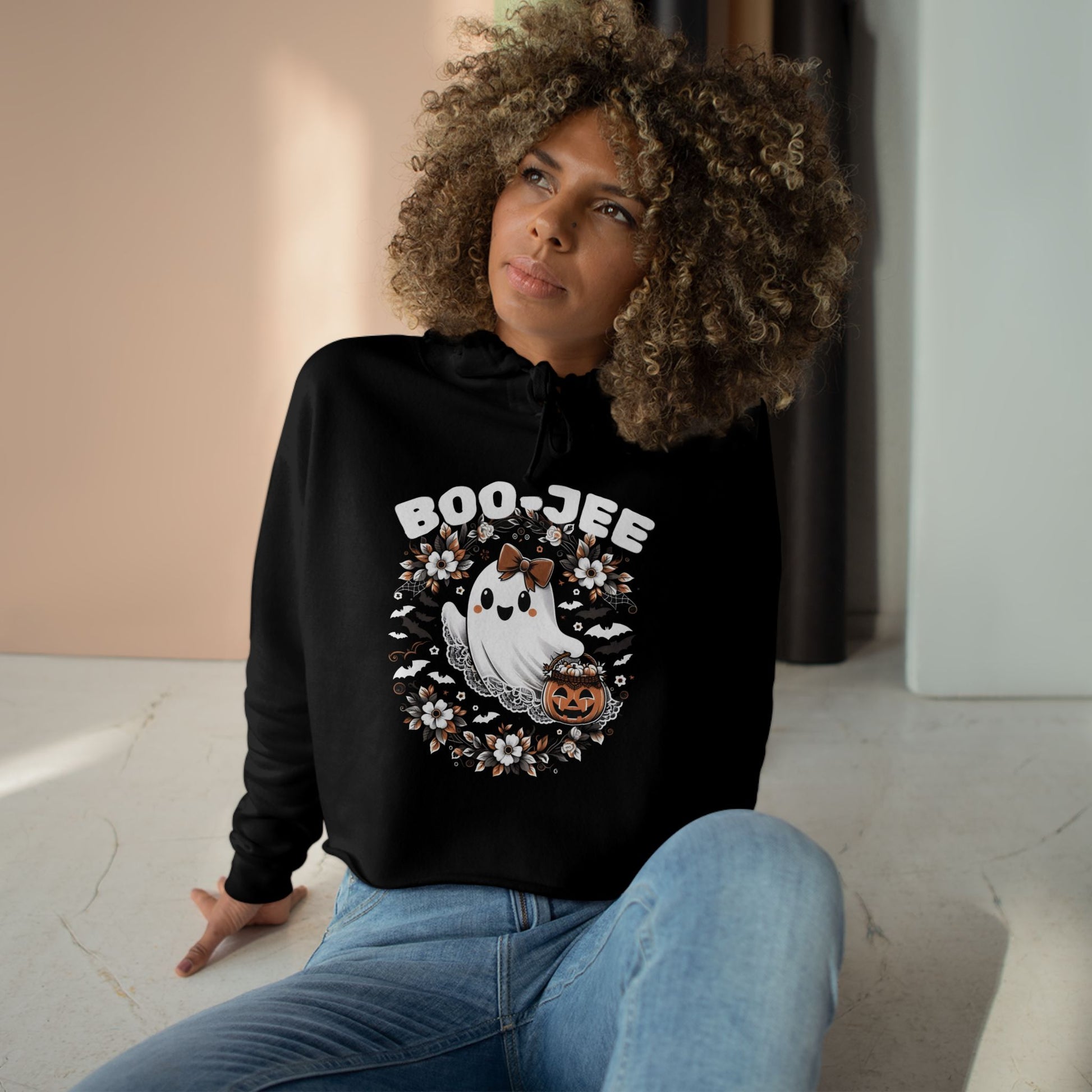 Boo-tiful & Boo-Jee Crop Hoodie, Halloween Hoodie, Ghost Graphic Sweatshirt, Cozy Fall Gift, Trendy Cropped Pullover