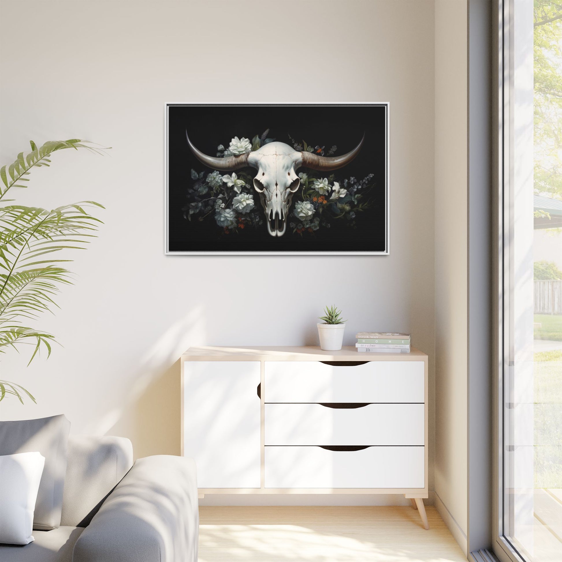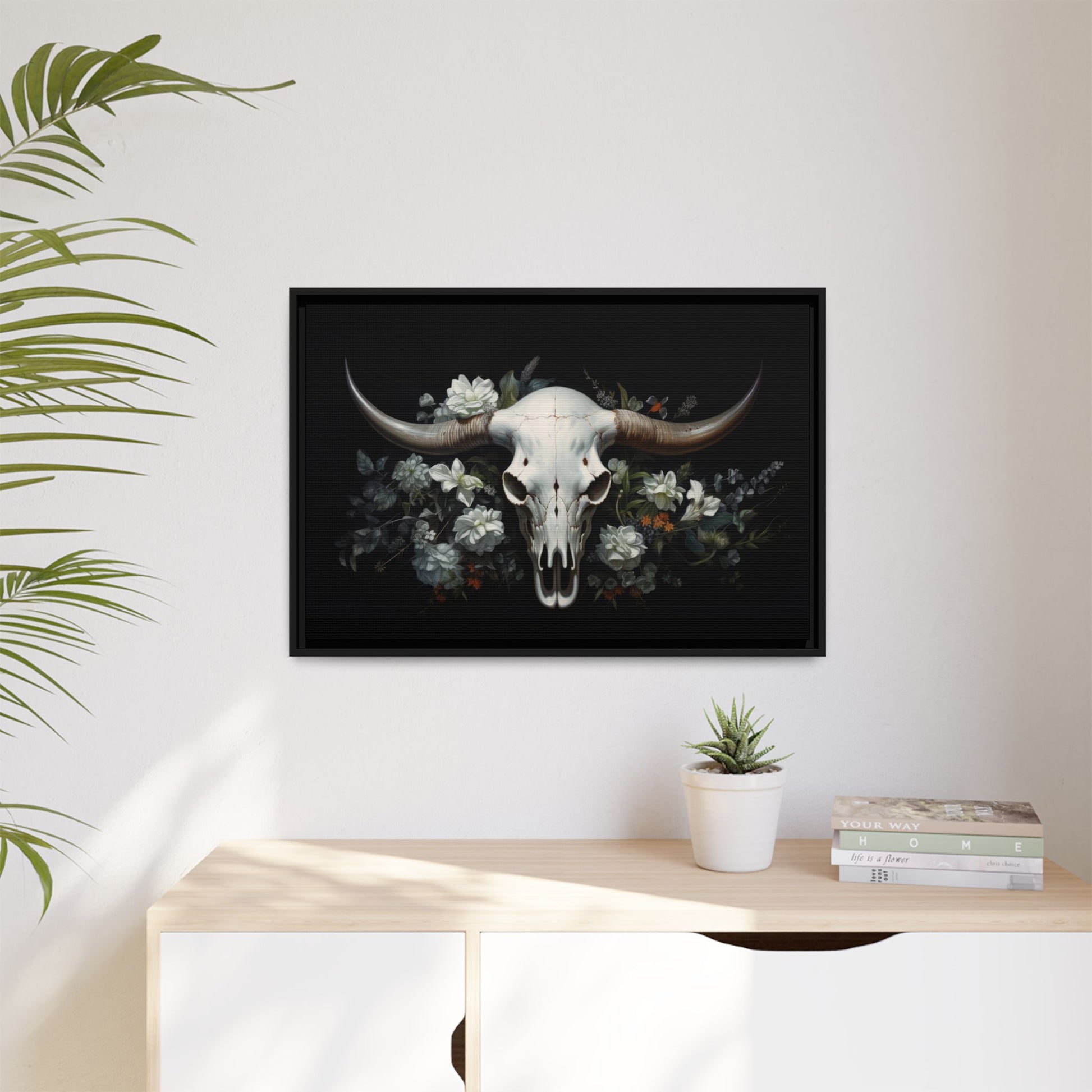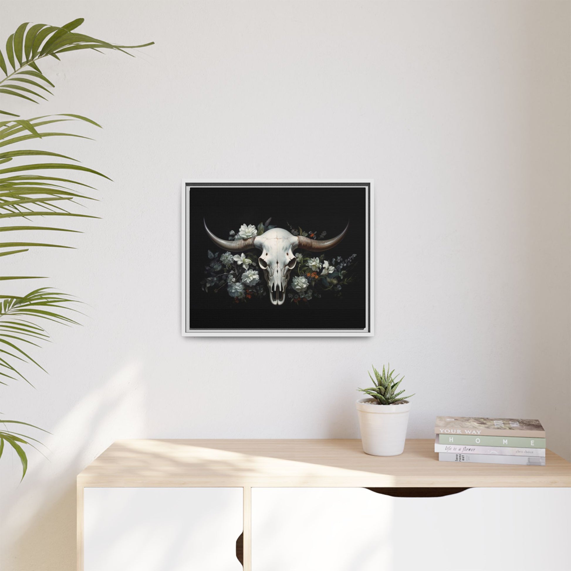 Bull Skull Wall Art, Framed Matte Canvas Print