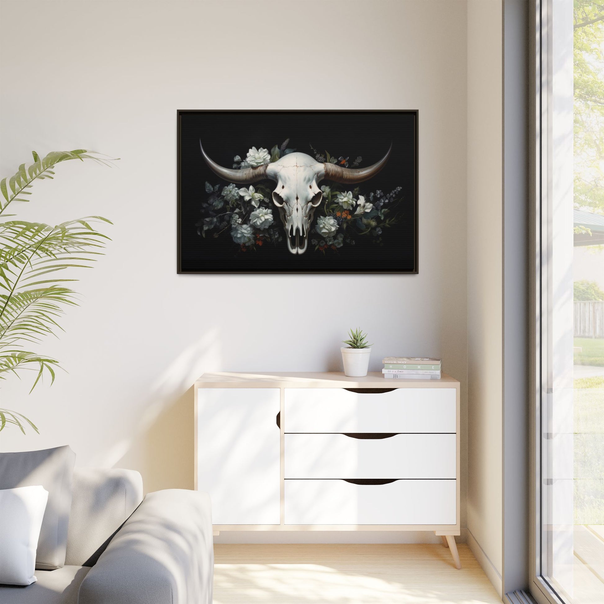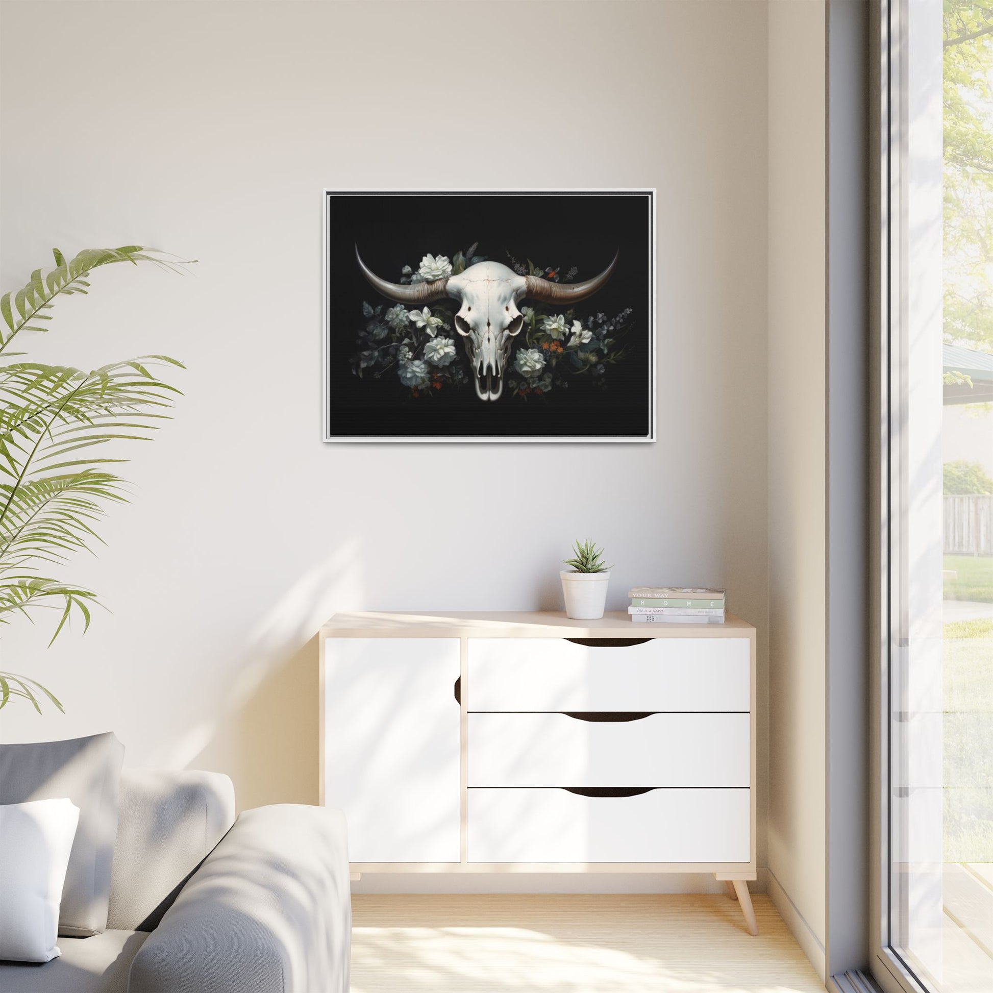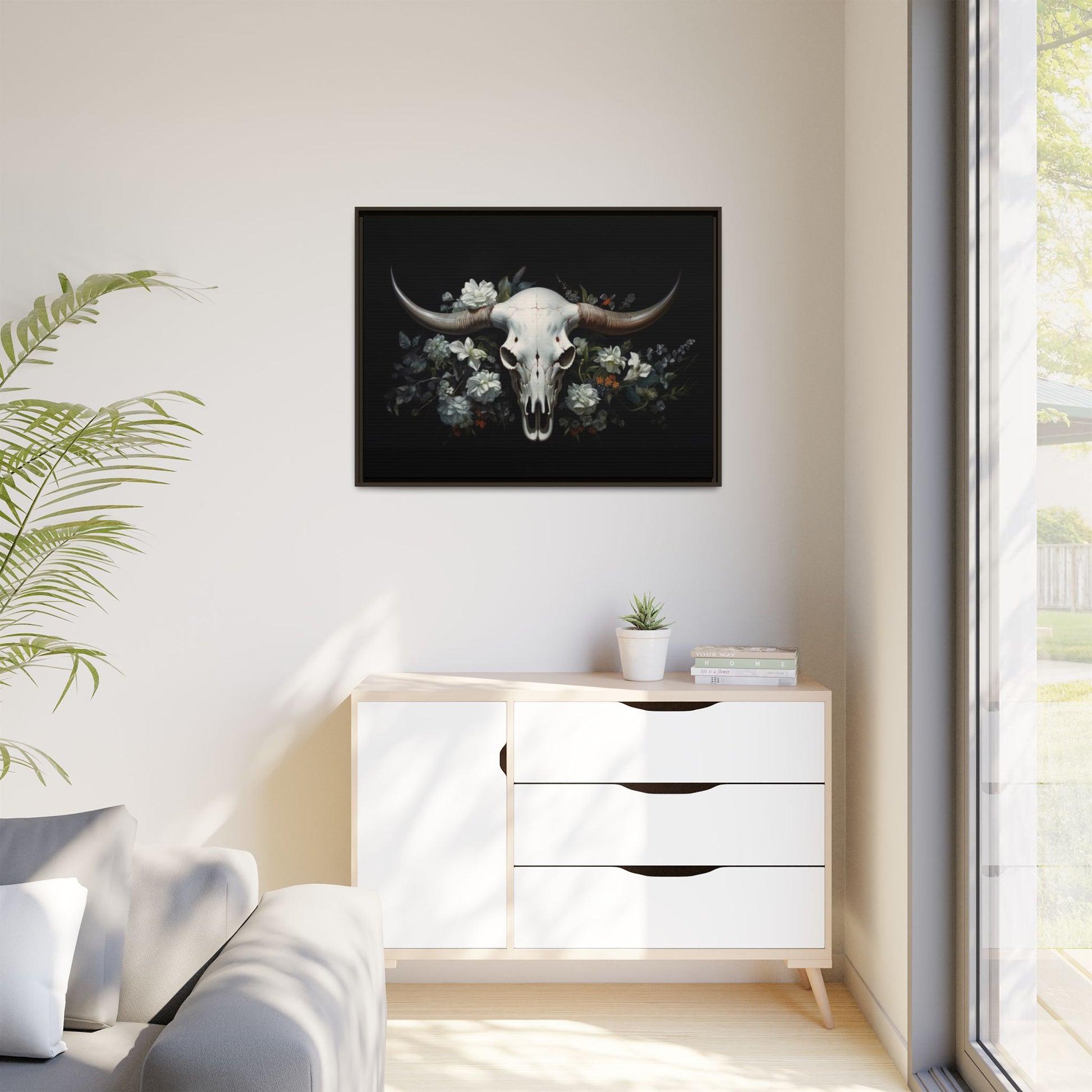 Bull Skull Wall Art, Framed Matte Canvas Print
