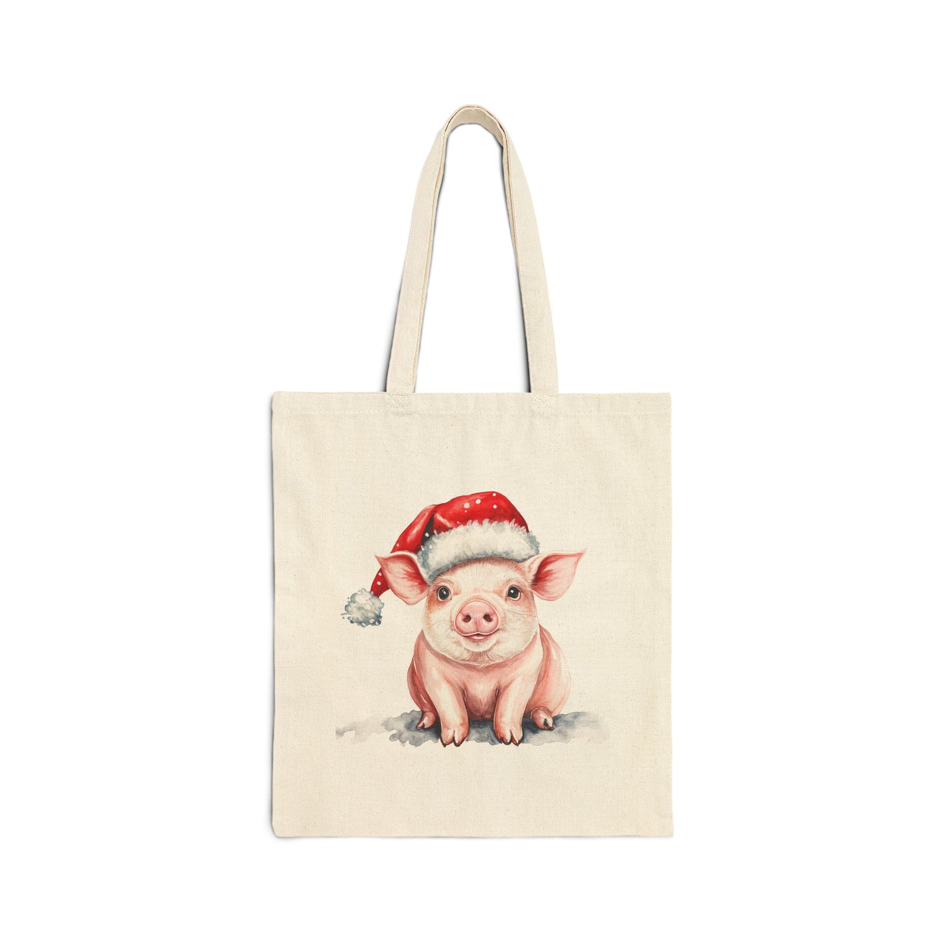 Embrace the festive spirit with this charming Cotton Canvas Tote Bag, featuring an adorable pig wearing a Santa hat. Perfect for holiday shopping or carrying gifts, this tote radiates warmth and joy, making it an essential accessory for anyone looking to spread cheer. Ideal for animal lovers and those who appreciate unique, whimsical designs, this tote bag is not just practical but adds a playful touch to your festive outings. Whether you're heading to a holiday party, a Christmas market, or simply running errands, this tote ensures you do it in style. Embrace the holiday fun with this delightful accessory, perfect for gifting or treating yourself!